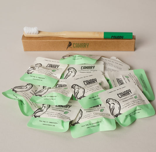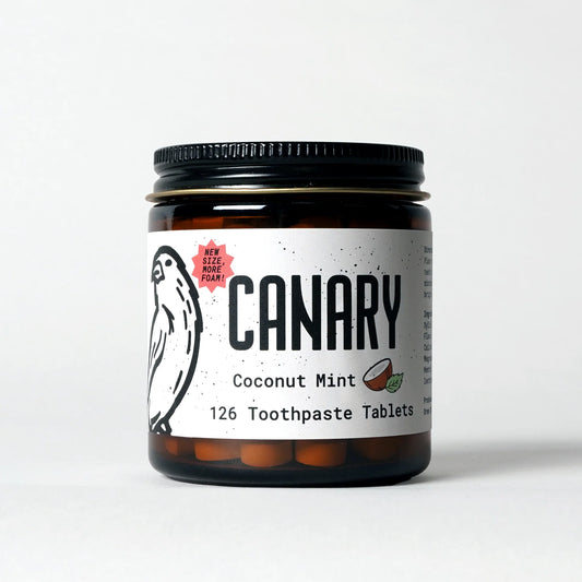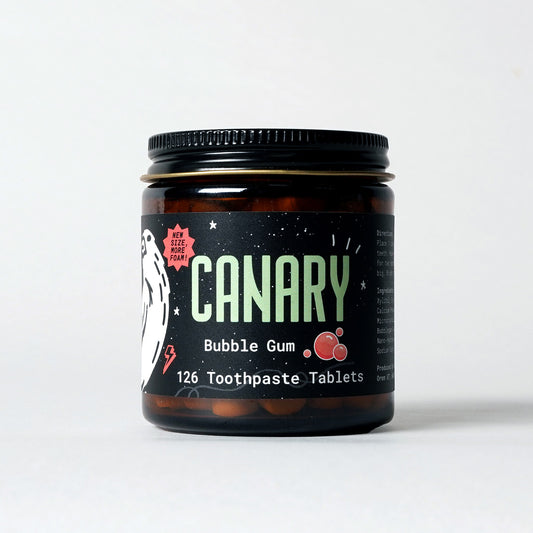 Collection of various flavors of Canary toothpaste tablets. Great eco-friendly option for travel, sensitive teeth and as a fluoride alternative.